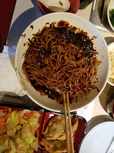 Theyve gotten a new wait staff so it might be under new management. The waitress I had was extremely rude. She seemed to be in charge because the other employees seemed to ask her questions. I always try a place twice before I decide on how I feel about it. Both times the same waitress was sneaky and rude. They had a deal 2 months ago if you spent $100 at Hmart then you get a free jajang myun. It was eat in only. The sign said you had 30 days from receipt date to get the meal. The sign was still up when I entered. When I showed the waitress the receipt she said the deal ended yesterday. I try to show her the sign but she had took the sign down. She says in Korean to the other waitress "she saw the sign so I guess well honor the receipt". I didnt let her know I understood. I went in again tonight. It was close to 3 pm. She gives us the lunch menu even though lunch is about to end. We saw in the Korean newspaper 7 meal options for $7.99 which is also limited to lunch time. We choose 2 meals and she says annoyed I better quickly put this in because the deal is about to end. I try to order from the lunch menu 2 items to go she tells me its for eat in only. She snatches the lunch menu and walks away. Later she walks by so my mom tries to get her attention so we can order something to go she completely ignores her and walks away. She doesnt return to our table. We finally get her to come over to our table. We order a meal to go she says annoyed lunch deals are over its dinner time now. My mom explains she wants it at dinner price so she puts the order in. She never brings our to go meal to our table. Another waitress brings us the receipt without us asking for it or explaining where our meal is. We ask her where it is and she doesnt know. My mom tries to get the nicer waitress over again after 10 minutes and we finally find out our meal was sent to the register area awhile ago. Worst service ever. Stay away. As long as your not trying to get any deals they have to honor you might get better service.