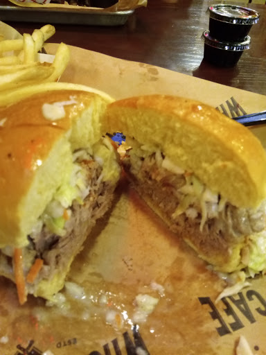 The types off barbecue sauce available were very good but the food itself was mediocre at the very best, the meet was dry and clumpy, the frys were okay... But I guess my main problem is they self proclaim to be BBQ but they dont... Theirs a difference between BBQ and just smoking meat. To BBQ you have to glaze the meat while its cooking to make sure it absorbes the flavour... Giving me a choice of sauces and making me dump it on my food is not true barbecueing.