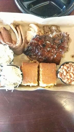 Just bad barbecue. Other reviews have never been so correct for bad reviews before. There is a reason no one is there around dinner time. The meat is dry. The cornbread and brisket was barely heated. The sides were mediocre at best. Just. Awful. I couldnt even get through a bit of the cornbread :(. On the plus side the cashier taking my order had a lot of energy for the restaurant, and I use that term loosely, being empty. She was super friendly and I commend her for her service. The Volcano sauce helped me get through half my order.