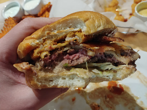 Finally I tried this place last weekend and what can I say I loved it. Loved the atmosphere very upbeat and waitress was upbeat and polite. Ordered the Diablo burger, omg so good, and got loaded fries which came with some sauce that tasted so good I wanted to slap my grandmother, jk I would never do that. Only thing they had cows everywhere on the walls which was nice but stare at them to long and you start to feel bad for them and eating meat all togther. One cow fine but several cows painted on the walls and its like they start looking at you. Ugh vegan much?, sike but damn I couldnt put down that burger even if my granny slapped me back .. Haha but never the less good time and great food and they have beer , beer and burgers how could you go wrong