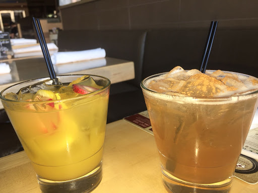 Walking in, it looked like a great place to hold happy hour and the atmosphere was great. The menu is very diverse which I liked because it gave me alot of options to choose from. Me and my fiancé ended up ordering the Samburger and the Kobe burger with a side of fries. The only thing we both could agree on was the fries were good and the burgers were super oily. Im not sure if thats the way the burgers are supposed to be cooked but it was way too oily for my taste and it made it hard for me to eat without having to wipe my face off after every bite. The bread the burger is also served on was a bit hard which added to the complexity of fitting such a huge burger in your mouth without making a huge mess. All in all Its a nice place to hangout and convenient to other stores (walking distance). But I dont think I will be dineing here again; especially $15 for that one burger (no fries included)