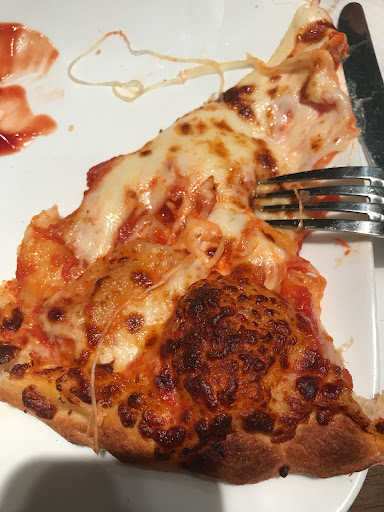 The crust is perfectly soft, and each pizza slice is thick with tomato and cheese, and therefore they do not flop around. I recommend the pizza (personally plain) with the French fries!