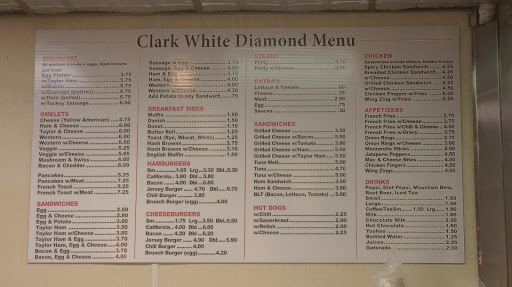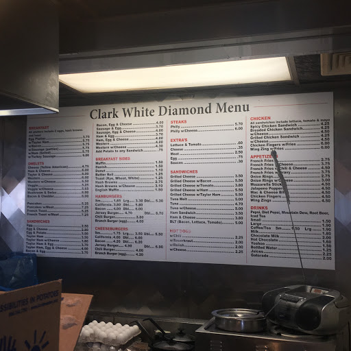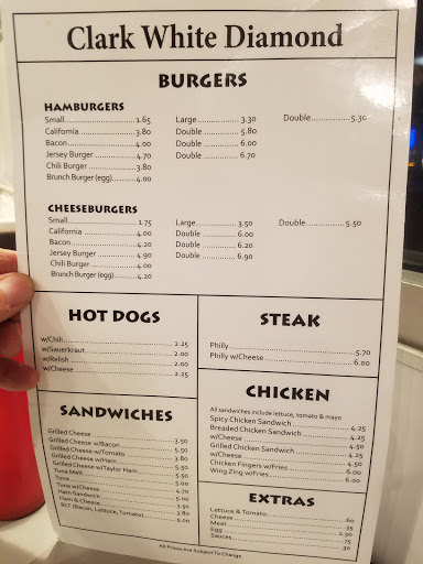 There is only one White Diamond Hamburger joint in the world and it is located at exit 135 off the Garden State Parkway. Just dont ever compare them to anyone else. Simply put, they serve the best burger you will ever eat-as long as you know what to order. I am a burger expert and the double cheeseburger that I had there yesterday was the best burger that I ever had. Period. Better than Five Guys, better than In n Out, the best, period. The fries are fresh and served HOT. The burger is juicy and delicious. I dont care if the chef is grumpy, I have been to plenty of NYC restaurants where the staff is downright rude, but the food is unforgettable. I want there twice in the last week, each time the service was very good. One time I was there and some rude customers came in, the chef took a lot of nonsence from those drunks and kept his composure. The servers were friendly and I spoke to the cook afterwards and he seemed friendly as well. He has been working there over 20 years. The only place that could come close to this in terms of a fantastic burger is Bare Burger in NYC. Here is how I rate the burger joints: 1. White Diamond, Clark NJ (Double Cheeseburger) 2. Bare Burger NYC (any burger) 3. Five Guys (Small all the way) 4. In n Out (Animal Style) 5. Burger King (Double Whopper w/extra pickles)
