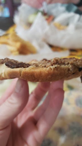 This restaurant is more like a little van at the corner of a major intersection. However, the fact that a place is weird has never stopped me before from going there. Hence, I decided to take the risk and check it out. However, I will not be spending my money or going back there again. First off, dont be fooled by the low prices. I had the special burger for the low price of $6-something. The special burger was two huge buns with such little meat in it that in fact, that meat was not a patty but rather a bunch of random pieces of meat stuck on bread with many major gaps and bites where I ate just iceberg lettuce and tomato. I think that the amount of meat on my entire burger was the size of a slider meat on a regular bun. The fries were the mushy kind from the freezer. The cheesesteak was better but again, the meat was overburnt and so sparse. I am not sure whats going on with the scarcity of meat but the whole point of ordering a burger is for the meat, and not for the lettuce. I was so disappointed in the meal.