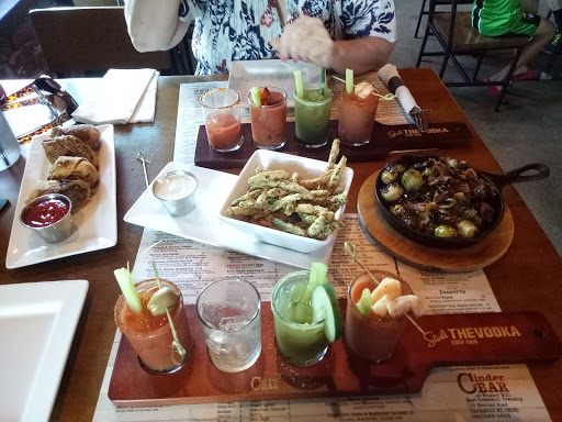 This place doesnt surprise me. An area with not much to offer, this bar gives that somewhat Philly city like ambiance. Brick landscaping with a rustic feel. The drinks and food are a bit overpriced. But they can do that because the people will pay instead of driving a tad bit further for a better experience. Ill call this an updated Applebees. Pass on the short rib pizza because twocr now its been overly cooked. Nothing more than a roast. Really now??? Short ribs. Thats b.s. and their vermouth vinagerette tastes more like straight mayo. Nothing special at all. If you have the time and a little of research you will truly find a much better spot. Nice try cinder