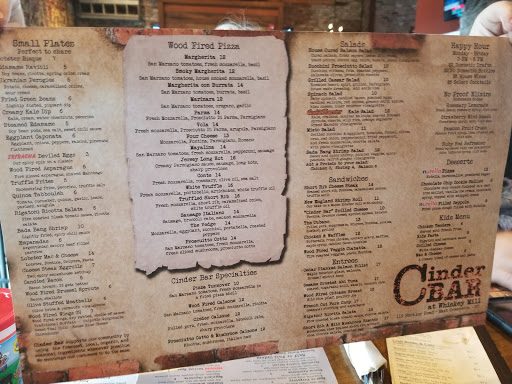 The Cinder Bar has an amazing selection of small plates, entrees and desserts. The drink selection gives you a wonderful selection to choose from as well. The wood stone wings were amazing. Definelty try the Short Rib Cheesesteak. If you like Nutella youll love the dessert options. If your looking for a change in pace from your typical restaurants, head out to the Cinder Bar. The staff is great and the service did a fantastic job at explaining the menu choices and options. Its definelty a great place to eat.
