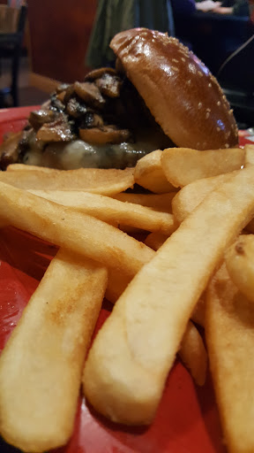 We were in the mood for a really good, juicy burger and had never been here....I now realize I wouldve been better off at the local diner. For this place to be known as a Burger place they should, at the very least, make their own! Our obviously, previously frozen burgers arrived cold, they were thin, rubbery and had no taste, Ive honestly had better at a fast food place. We ordered a normal size shake, it was a 1/4 filled in a 20oz cup with mostly whipped cream. The service was good, the smiling waitress was attentive but the gentleman who I assume was the manager was rude. When I approached him about the shake he seemed bothered then had a snarky and sarcastic response. Not a good look.