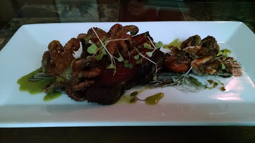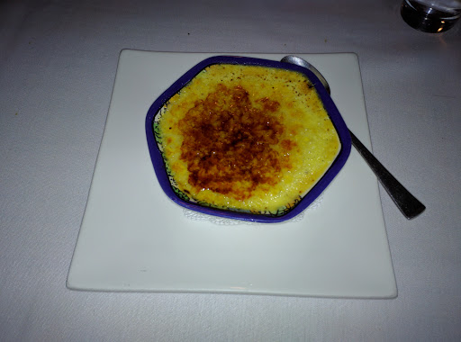 We had an enjoyable evening at Ellias, the staff was warm and attentive, and made us feel welcomed. I had the brie appetizer which was very good, and the evenings special, crab cakes and prawns with a smokey broccoli rabe, which was amazing. My dining partner ordered the calamari appetizer, followed with the steak with truffle sauce (not quite the right description). I didnt hear from him again until it was all gone. Although we were celebrating and went for the more extravagant fare, the menu caters to multiple price points and Im sure everything is given the same great attention to detail.