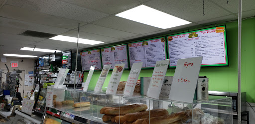 Great options for sandwiches. Huge menu. I had #15, American. Bread was a little tough, but still tasted good. I liked the amount of meat on the sandwich. Offer several toppings. Also a convenience store. I was able to grab chips and a soda. Staff was nice, just fast paced. Has a few tables inside and a few picnic tables outside. Small parking lot. Bathroom was extremely awkward. You walk behind the counter and through the kitchen to a single person bathroom that is also used for storage. At least the toilet was clean. Near a gas station, and close to interstate. Was a good stop for us while traveling.