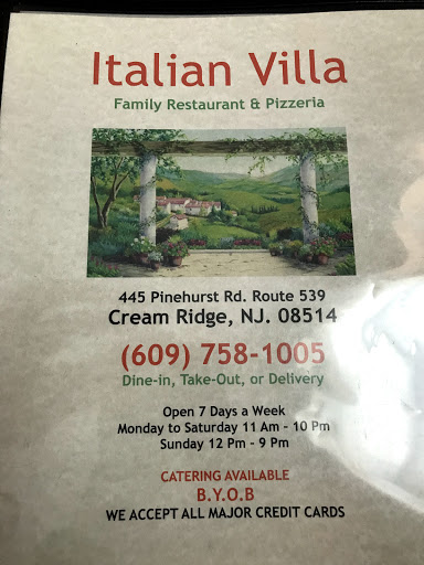 My wife and I stopped in just by chance on our way home from LBI....weve passed this place far too many times as we go to LBI often ...we live about 20 miles,from this resturaunt..but I can honestly say...we are now new customers...the owner and the waitresses are very friendly...the place is clean...and for the money..the food is very very good ...we used to stop in at another restaurant just a block away..a wooden cabin...but I wont say its name..weve had a few bad meals lately there..so we swore we wont go anymore...as,we passes that place..i noticed Italian Villa...we,pulled in..and we are both glad we did...no alchohol...but wonderful food...we will go back as often as possible given our distance