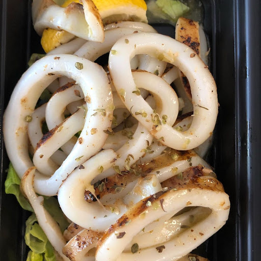 Love the salmon gyro and chicken souvlaki on a stick. Friendly staff. Outdoor seating.