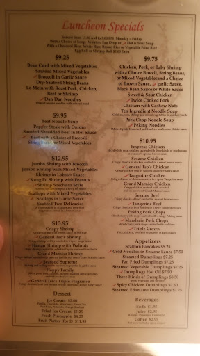 Best place in Morris County to have a special event. Have gone for Birthday Parties, Graduations....most holidays and terific Chinese New Years special menu. Better food and atmosphere then when I actually visited China...The flavors are not covered up with salt. The staff is receptive and bend over backwards to accommodate your requests...I pick up cakes at Deville dairy and they happily serve it after a meal and do not charge extra for sevice...they even suggested I get ice cream cake at Deville Dairy. Awesome community cooperation. Now dont you all go crowding my favorite restaurant. Just had to finally write review after years of enjoyment.