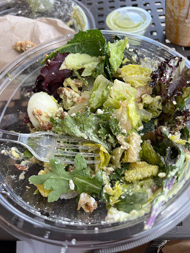 Ordered salad with chicken and I got few leaves of lettuce in Nasty dressing with NO chicken whatsoever ,and how you call it a salad ? Lettuce with some dressing ,oh and over $7 for this ? Just walk to Walmart and buy their salad for $2.98 ,at least they gave me money back