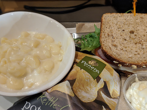 Food is really good. If youve never been to Panera the soup in a bread bowl is really good.