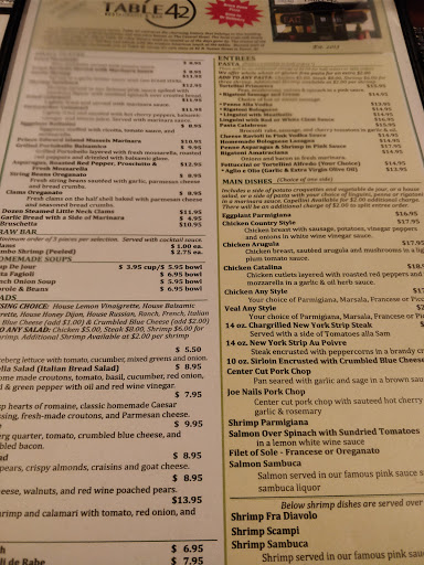 After hearing wonderful things about Table 42, my friends and I decided to have dinner there several weeks ago. Everything was delicious and the service was terrific. I have thought about my dinner just about every day since! Tonight I am going with entire extended family and cant wait.