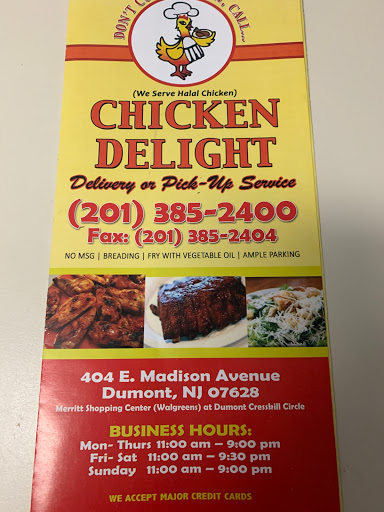 Looking for good fried chicken on Long Island? Well look no further cause you found the absolute best fried chicken around. Ive been coming here for years for take out and my wifes family has been coming here even longer. It doesnt look like much from the outside, hell, even from the inside, but dont let that sway your decision to eat here or grab some takeout. The chicken is fried perfectly, crisp and delicious. All of the sides are amazing - fries are yummy, cole slaw (home made by the way) is great and the corn bread (also home made) is heavenly. This is a family business that has been passed down from farther to his two children. You will almost always see one of them there and they are always super nice. Dont let the few negative reviews here influence you, if you want good fried chicken, dont cook tonight, call chicken delight!