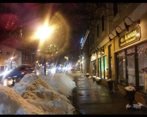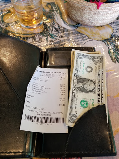 Mis Amigos is clean, our waitress (with glasses) was super friendly and had good suggestions as we are unfamiliar with Mexican fare. I had a very good chorizo burrito and my husband the T-bone with Grilled Shrimp, also good, from the Daily Specials menu. Food presentation was a treat and the condiments excellent especially the green salsa made with a bit of avocado. Go on a Sunday (free street parking) and have an early dinner in advance of the dinner crowd. We will definitely return. BTW, the bathroom is also decent!