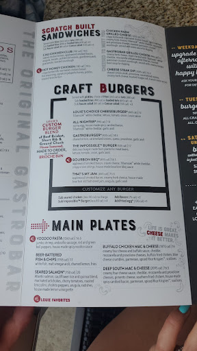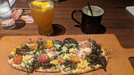 Man, I wish I could love this place. I DO love the vibe and atmosphere. It has a very modern, open design with a large central bar. Lots of taps for beer...but since its a franchise, that limits how creative they can get with their brew. I like to support local craft breweries, but sadly, you will find none of that on offer here Where this place falters, is the service. The bartenders for the most part seem like theyd rather be somewhere else. They avoid checking on you, and on one occasion misdirected me. It was happy hour, and drafts were on special. So, I order a happy hour pint. The bartender asks if I wanted the larger size instead....so I figure, sure why not? What she failed to mention was that the happy hour prices were ONLY for the pint size. So, why did she upsell me without warning me there were no specials on the 20 oz.? No idea, but thats shabby service in my opinion, and possibly a ruse to get a larger bill for a larger tip. Annoying. The food is hit or miss. Tots are phenomenal. Veggie flat bread is spectacular. Sliders...meh. Calamari...soggy. Wings...not bad, but not great. This place has a lot of potential...I just hope they can pull it all together someday.