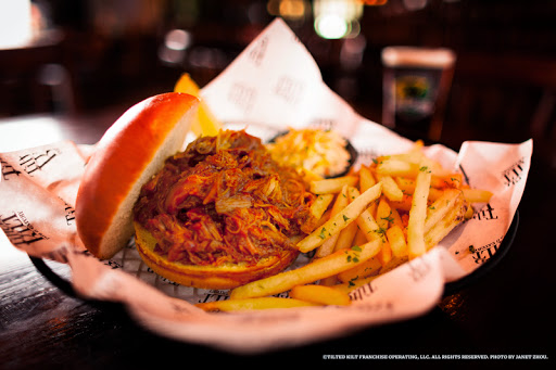 Went here after completing the Tri State Tough Mudder. We drove all the way from Buffalo, NY for this event so we wanted to try a new restaurant that we didnt have in Buffalo. Tilted Kilt did not disappoint! Food was delicious and came out very quickly, the bar tender made our drinks perfectly and even came over to the table to do a little show flipping the bottle around, and our waitress was amazing. Meals were all done correctly and tasted great despite us having a large party, and our waitress was always coming back to ask if we needed drink refills or anything else. I definitely recommend to anyone who lives in the area and its an absolute must if your visiting from out of town, you will not be disappointed!