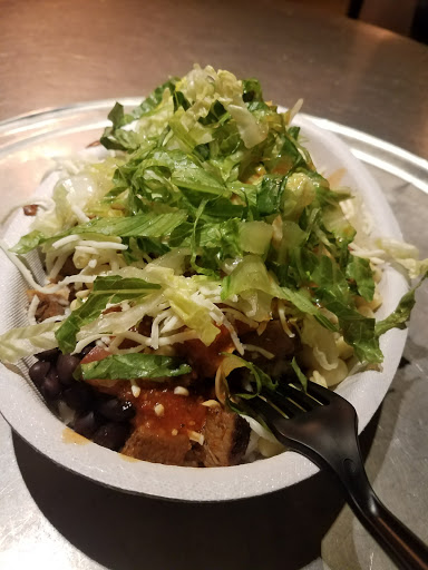I love this Chipotle because Food is always good, plus, was close to work! Serving Huge Burritos...(really 2 meals in one), but my Fav is the Chicken Bowl, w/the works...beans, corn, sauted peppers & onions, cheese, green salsa & of course, Guacamole!! Theirs is AMAZING! Friendly, professional staff, too! Always crowded, so get ready for a table search, or share..always Fun too.