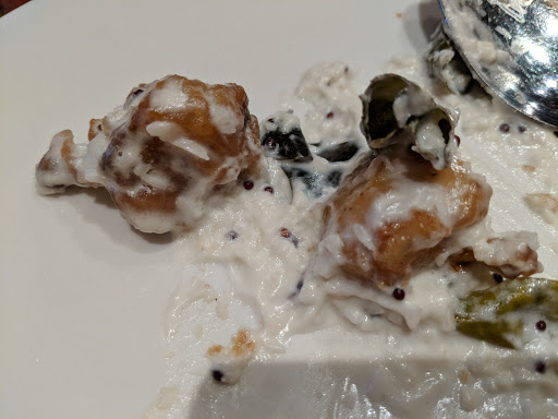 Tiffin’s buffet is large and in charge. The selection is wide compared to most Indian buffets with soup, multiple desserts, and main dishes beyond the typical chicken tikka and paneer saag. The food is well seasoned and excellent with a few items that are a bit spicy, rare for buffets. Service was decent, but a bit disappointing that for a family friendly spot, there was only a single high chair available so we had to use car seats. The goat curry and chicken curry were both excellent with great depth of flavor and a bit of spice. The mango lassi dispenser was a nice touch for the buffet as well. You’ll have no problems finding a spot in the huge parking lot.