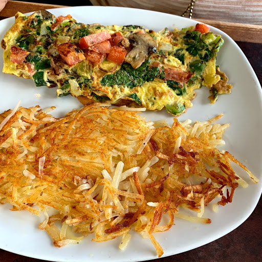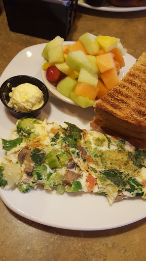 The food was spectacular. I purchased the everything omelette. My girlfriend chose a scrambler. The omelettes were filled and very flavorful. With a purchase of the omelette it came with your choice of either hash browns, bread or fresh fruit AND 3 pancakes, a muffin or another item. Thats a lot of food for one meal. They also are priced right. The scrambler was great although the hash browns left more to be desired. The portions were large and it came with a great amount of choices and food. It even came with chicken sausage links. Id never heard of them before and I would think twice about getting them again. Inside the facility is well maintained. It is very clean and feels spacious. The staff is extremely friendly and attentive.
