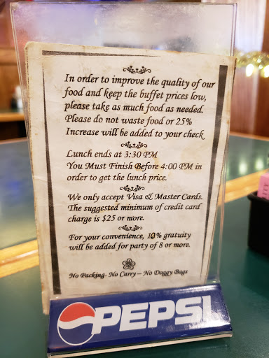 I was there for lunch with a friend on 2/3/2010. The variety and quality were fantastic. Start with one of 4 different soups (seafood is delicious), and several appetizers (fried wontons, boneless pork, peel and eat shrimp), and of course some sushi (california roles and several other varieties). The entrees - pick from traditional chinese, or seafood (salmon, snapper), oh so many to choose from. Everytthing I had was very good. They even have a section for kids and those who dont want anything fancy. Desserts (fruit, cookies) and ice cream. For $10 (incl. tax/tip) you just cant beat the place. And its clean, and the staff is courteous.