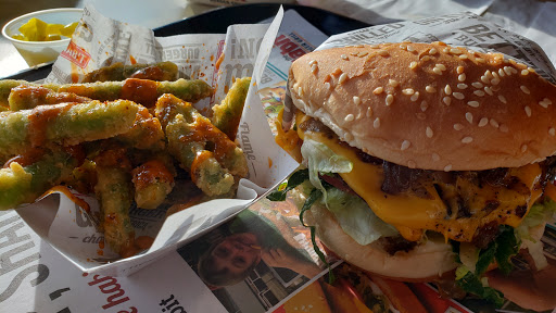 Ive tried the food here a couple of times. And both times the food came out the same each time, which is good. But I have to say, its still fast food. The burgers here have a rubbery consistency. It could be that the patties taste like they were frozen. They arent bad, but they arent good. The size of the patties are a bit bigger than Five Guys, but they arent juicy nor flavorful. They only come as one patty or two and you have to pay for the extras. The fried green beans are a nice menu item though. You dont see that in many places. The inside of the place is beautiful. It was done very well. There is also outdoor seating so you can eat and enjoy the fresh air. Sometimes its a little hard to get parking due to the lot being small and all the women going to get their Starbucks fill for the fourth time of the day. And lastly the customer service, that Ive experienced, is very good. No complaints there. But sadly I dont think I would go back. I can get better food elsewhere.