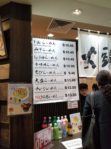 Inside of a marketplace, with a delicious menu. This was a surprisingly satisfying ramen place. The cashiers were very knowledgeable and helpful, they explained the variety and differences of all their menu items. Excellent ramen, with mouth watering pork belly. Definitely will visit again in the future. They had very fast service and the quantity and quality was grade A. Give them a try!