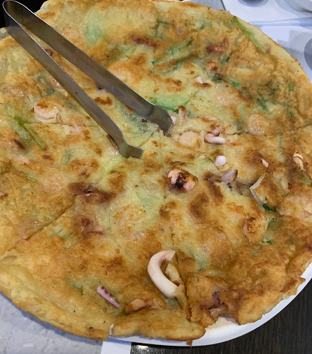 Ive found myself craving Korean soup from this restaurant quite often. I get their beef stew Yukgaejang level 4 spicy and it is amazing. The stew is slow simmered with home made tofu, mushrooms, scallions, and other veggies. Served with rice or noodles. It is enough for 2 people. They serve 6 starters with your meal. Fish cakes, seaweed, sprouts, turnips, kimchi and pickled cucumber. The chicken version is good too. Kimchi pancakes are greasy but taste great. Great value for money and a very friendly staff.