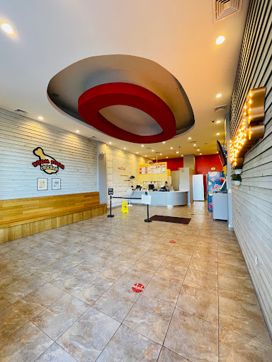 Ill give it a 3.5 just for the uniqueness of the chicken. They are famous for their Korean style fried chicken. Its extra crispy but not doughly like KFC (hard to describe). Sauce is either regular (sweet) or spicy (has a kick). You can order 50/50. Prices are reasonable $20 for 16 pcs of wings and thighs. My 2 issues are that some pieces are large and then you get like a baby wing piece (wt heck?!) and the wait times (10-15 mins per order). You can order in advance (call) or online. Service friendly I guess (order and wait). They do have free wifi (code under the tv). thanks