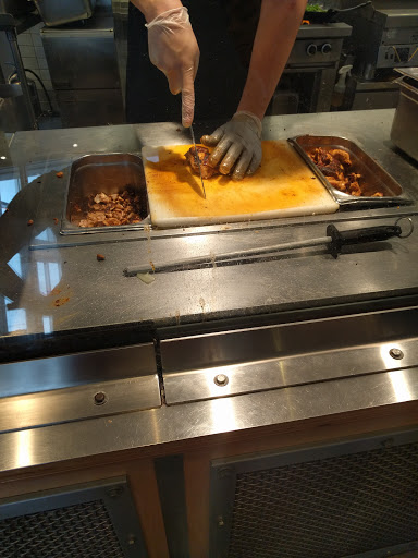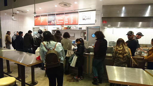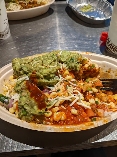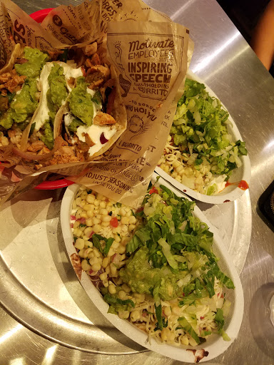 love the food..I deducted two stars because 1) the portions are getting smaller. 2) I had ordered a sofritas for myself and a chicken bowl for my husband. guess what- the server carelessly let a few pieces of chicken fall in my bowl while adding to the chicken bowl. I realized that after eating the two pieces. I had to throw away my bowl after that.