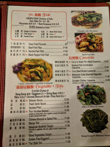 Ever since I noticed this restaurant in the restaurant listings, I wanted to try it as an alternative to Penang, which had gotten far too crowded. Parking is very tight out in front of the restaurant. I didnt see any signs so I had no idea more parking was available around the back of the row of stores. Coco is a smaller restaurant than Penang but we were early so we had no problem getting booth seating. What we noticed is some of the staff at Coco came from Penang restaurant so this restaurant may as well be an offshoot of the other. Service was very good. The food was about as good as one can find around here for Malaysian food. We tried the Gado Gado, Curry Chicken, Cantonese Chow Fun, and Curry Mee Yong Tofu. (Curry Stuffed Combination Noodle) Each dish was well done and we finished everything with no complaints. Prices are reasonable for an ethnic restaurant. Its not a particularly upscale place. And finally, I noted that the restroom was reasonably clean, although that poster of Cindy Crawford seemed dated, from a bygone era.