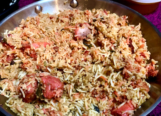 I ordered the thali and my husband the goat biryani. The biryani had more bone pieces than actual meat and the rice was thoroughly under seasoned. My thali contained a roti that had to be broken down into pieces by 2 hands and was way too thick. The tendli subzi looked like it was warmed in microwave because it was dry and tendli pieces were kinda tough to chew. The cabbage subzi was salty. The papadam was not crispy. The quantity of plain rice way too much but the amount of rasam and dal provided was enough to eat just 5 spoons of rice. The only savior in the thali was a warm gulab jamun. Overall the ambience is not great, the food really average and service o.k. Its probably a good place to eat for all the bachelors and forced bachelors who dont want to step in kitchen on weekends.