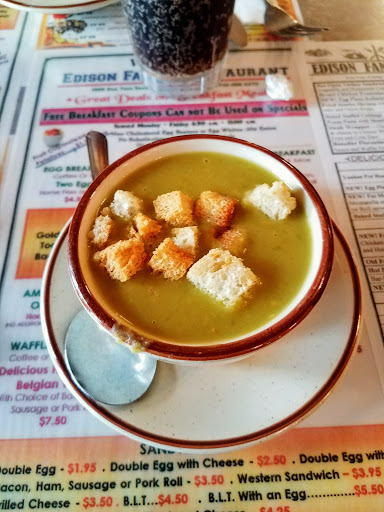 This long-established Edison eatery is perfect for an inexpensive diner breakfast. But theres one real reason to go there -- the SOUP. Worth every penny, those homemade soups bring me to EFR every time someone in the house is sick, or the weather is cold, or Im just craving split pea, matzo ball, chicken noodle, or any other number of delicious flavors. Take 4 quarts home for $20 and thank me later.