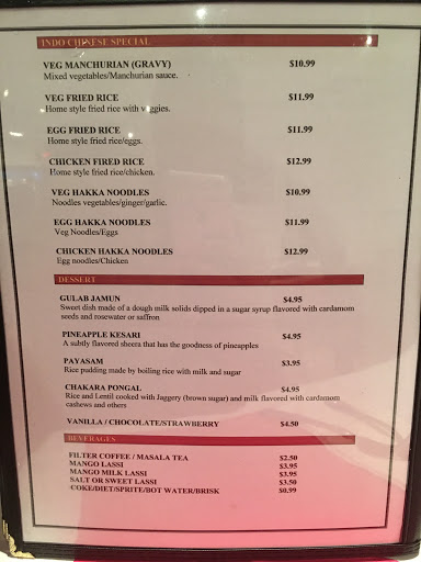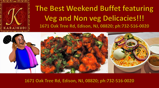 We intended to go to the highly touted buffet, but didnt realize it was only for dinner. Regardless, with a menu as vast as Karaikudis, we had no problem finding some things to try. My wife and I love Indian food, the spicier the better and had tried Chettinad before and really liked it. We ordered what I think were two of the hottest items on the menu, the chicken chettinad, and the Mutton Sukka Varuval. We also got the paneer 65 to start and a side of rice and naan. The paneer was very interesting, it was deep fried and then marinated in masala. It was a huge portion, plenty for two to share and the paneer itself was very well made. Our main dishes were also delicious. The chicken, though on the bone which I typically dont like as it is too much work, was tender and extremely flavorful. This was spicy, but not runny nose spicy. The mutton was incredible, succulent cubes of boneless meat smothered in a delicious, burning hot sauce. I may have looked like I was tear gassed while protesting something by the end, but it was totally worth it for the food. The huge portion of rice (a single order between two people was plenty) and the delicious naan helped soak up the extra sauce and cool down a bit. The naan was one of the best Ive ever had, we ordered the special one which was covered in onions and masala. The portions were also standout as we normally run out of sauce way before rice at other Indian restaurants and here we had plenty left. Service was a bit spotty as we had our places set, unset, then set again as well as waiting about 15 minutes to have our places cleared after finishing. They still werent completely cleared even after we payed and left. Our waiter though was friendly and helpful. The atmosphere is very authentic with Indian tv playing and music in the background. It is obviously a favorite with locals as well as it totally filled up by the time we left.