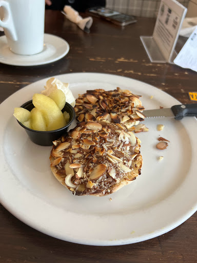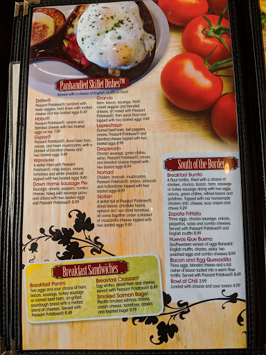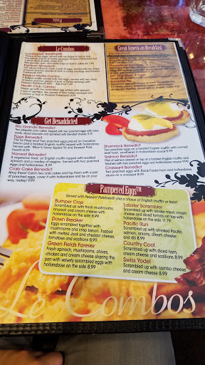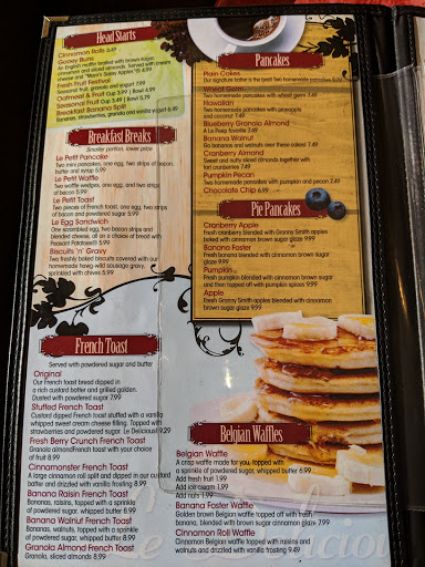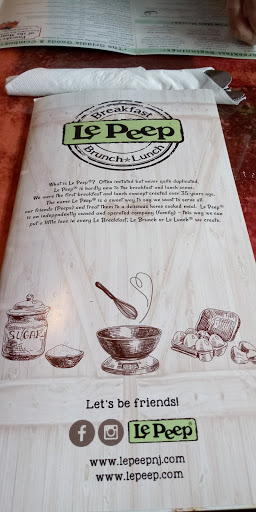 We moved an hour away from the Edison Le Peep about 10 years ago, and this was our first visit back since then. The decor has been upgraded, very nice. The service was excellent, our server was friendly and attentive. The food was a little disappointing from what we remember 10 years ago. I had the Belgian Waffle with Moms Sassy Apples. The waffle was very good, Moms apples were far from sassy. No spices, no flavor - they tasted like canned apples that had been overcooked into mushiness. My husband had the Banana/Raisin French Toast. The bananas and raisins were very good, a good amount and tasted great with the French toast. The FT itself, well, was bland. The bread had been barely dipped in the egg custard mixture, the inside of the bread was still white. Soak that bread, folks! Thats what gives it the flavor. I realize that portions may have been cut to keep prices down, but please dont sacrifice quality. We are willing to pay more for an excellent meal rather than get a mediocre meal. All in all, we would return. My old favorite was the HenPen, my husbands was the Lumberjack. We wanted to try something different today.