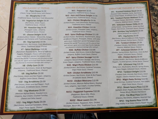 Great tasting pizza with a indian twist.. Great options for vegetarians.. try their specialty signature pizzas..