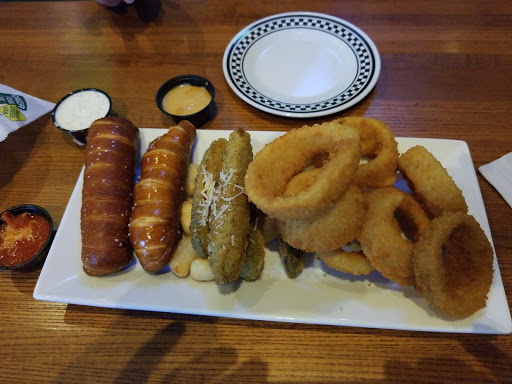 First tried their wings through the Wingo pick up" Waste of time to order by phone then pick up due to the 2 cars ahead of me placing orders. Wings were nothing to write home about. Sauce was hot as hell though. Then went in on a Monday early afternoon. If you like looking at stuff, its a good place. Its a good distraction from their lousy service and food. Place wasnt 1/4 full and the wait staff seemed more interested in chatting with each other. Got to place an order. We started with a sampler. Poor waitress couldnt lift it to the table, all over the floor. 2nd one came and again was nothing that great. Then our order came out. Food was luke warm. as was my beer. Which was weird cause at 1/4 full our food came out pretty quick and for sure should have been hot. Not to mention how tight the seating is. Wont be going back.