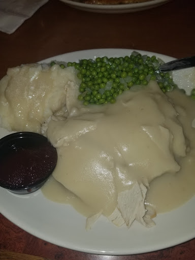 In town for business and was staying at the Days Inn right behind the restaurant , typical extensive diner menu , ordered the chicken pot pie flaky crust , plenty of vegetables , however a toothpick size chicken bone hidden inside , came very close to being lodged in throat , the waitress returned and asked if everything was ok , I showed her the bone and explained what happened and she went to get manager , when he arrived he asked what happened , I explained and he said the reason there was a bone inside is that they use real chicken , and that proves it , I advised him I did not order BONE IN CHICKEN POT PIE! , he asked me what I wanted , I said just bring me check so I can leave , he then offered me ice cream to make up for it ! My advice is to chew your food very carefully here , one star is for nice waitress