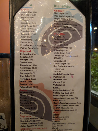 I love Mexican food. The environment is very comfortable. Love the ethnic Mexican decor and art. The Latin music is great! They have a nice variety on the menu and its ALL DELICIOUS! The prices range from inexpensive to moderate depending on what kind of meal you prefer but its worth every cent! Perfect ethnic Mexican-makes Taco Bell look silly. Once u eat here u will NEVER eat Taco Bell again, not even for quick timing!