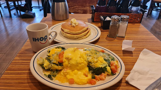 Located across from jersey gardens mall very close to Newark liberty International Airport and hotels! My party of three visited this place around noon Sunday. Very busy with about 50 patrons waiting to be called for seating..the staff is very professional. My was 40 min and well worth the wait. I-Hop being well known for their extensive breakfast menu which my party ordered , me a burger and fries! Our food came about 10 mins later as we ordered and hot! All for a good price...approx $12 a person with drinks included! I highly recommend end this place!