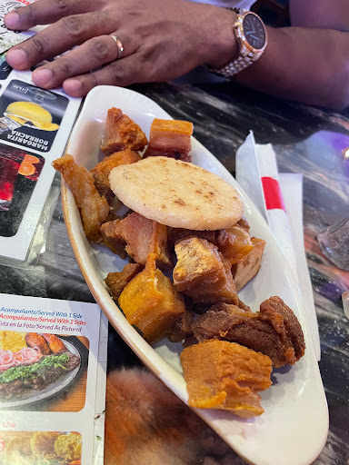 The food was really good. I was honestly really surprised. We ordered the chicken and shrimp with rice and maduros. The chicken came out with a nice crisp to it and the shrimp was good and not too chewy. The drinks were really good and it was happy hour too!! Got a sangria which was the bomb. I thought it was going to be a red sangria, but it didnt have that heavy taste like a red sangria so it was probably mixed with white sangria as well. BOMB. The other drink I got was a margarita. I dont remember the flavor, but it was BOMB as well...lol This restaurant is not a place I would normally come to, but Im glad I did. So if you arent sure as well, give it a chance.