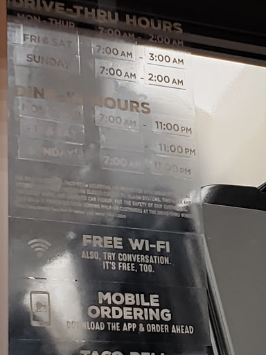 Dont go there, they lie about closing time. Lying, skimpy fast food pieces of crap. Says 3am but they stop serving food at 2:50, some lazy employees I see, Taco Bell has room for budget cuts it seems.