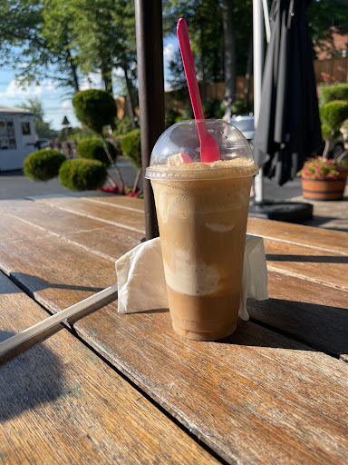Away from the busy main streets. Plenty of parking and lots of outdoor seating. Very good servive and a wide selection.