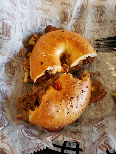 It has great bagels and there is a large variety to choose from. The place is always spotless and love the coffee bar. Lastly it is located downtown and there is plenty of parking nearby.