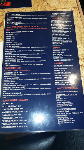 Ate lunch there with my family and had an amazing time. Intimate, well decorated, beautiful restaurant that delivers up to 5 miles radius. I had the vegetarian box which was like a 3 course meal plus excellently prepared. My mum had the Lamb box, dad the chicken tikka masala and daughter saag in which they devoured happily. Our desserts were Mantra pan ice cream which was sweet, aromatic and sweet, but spices in whole form so chew well, and gulab jamun. By far one of my favorite restaurant in Bergen county.