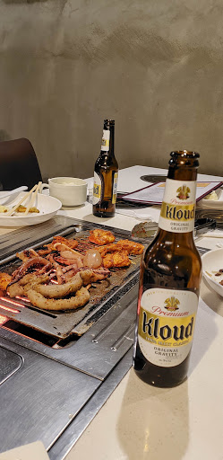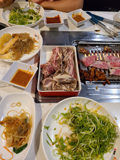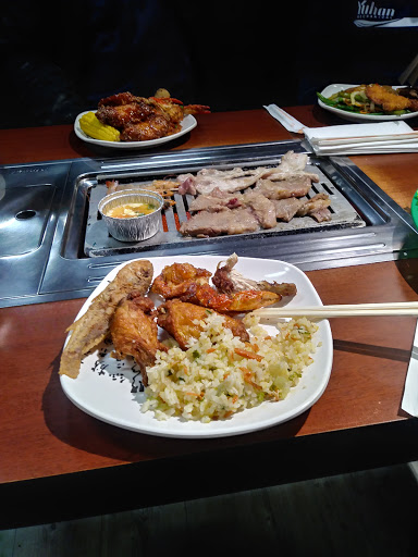 So Good. All meat is at the buffet bar, you grab what you want, cook it table-side, and enjoy with large groups of friends. Cost is similar if not less to what youd pay at a sit-down Korean restaurant, but the advantage here is that you get variety of meats (ie. Youre not restricted to purchasing large plates of one type of meat, but everyone can get the meat they like most and cook it at their discretion). Plenty of parking. Take your jacket or sweater off and leave it in the car before going in, because whatever you wear will smell like Korean BBQ.