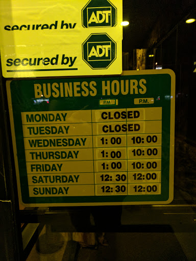 | Working: | Closed Closed 1PM–1AM 1PM–1AM 1PM–1AM 1PM–1AM 1PM–1AM |