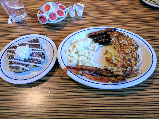 Decided breakfast for dinner and man was I wrong it took like 10 minutes to be seated in an empty restaurant then followed up with a 20 minute wait to order drinks. Waitress was extremely rude about how she took our order granted she could have been new but still rude and completely clueless of what was going on..